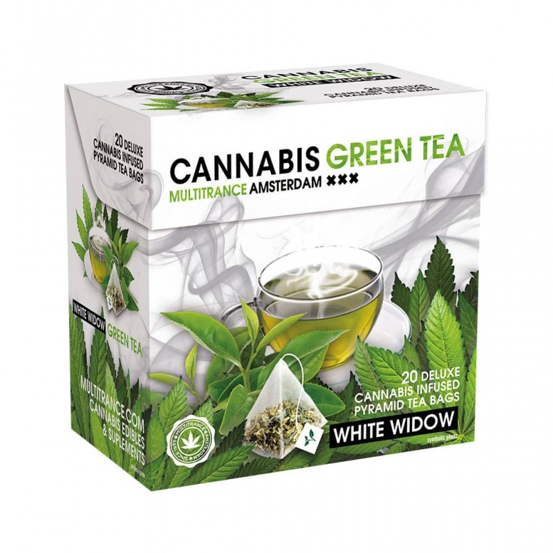 100% legale per il consumo nell'Unione europea (UE) THC FREE (0% THC) Nessun effetto narcotico Prodotto in UE Contenuto: 20 bustine di tè piramide deluxe Contiene estratti di cannabis Ingredienti: Tè verde con estratti di cannabis.