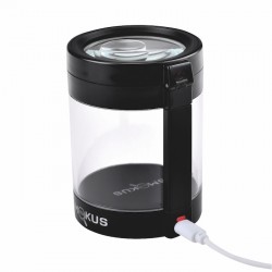 Lo Smokus Focus Jar ha un anello luminoso a LED nel coperchio e due lenti di ingrandimento. Il coperchio ha una chiusura ermetica in silicone per mantenere freschi i tuoi fiori. Batteria ricaricabile USB. Ingrandimento 8x Utile per trasportare i tuoi fiori o da utilizzare come espositore.