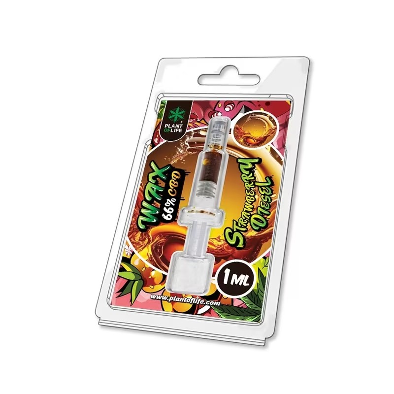 Plant of life Cera CBD al 66% infuso con i terpeni Strawberry Diesel Prodotto da Canapa biologica Estratto a spettro completo con estrazione supercritica di CO2 Confezionato in una siringa per un facile utilizzo CBD Wax 66% è un prodotto che ha subito rigorosi controlli di qualità ed è legale al 100% poiché la sua percentuale di THC è sempre inferiore allo 0,2% 1ML