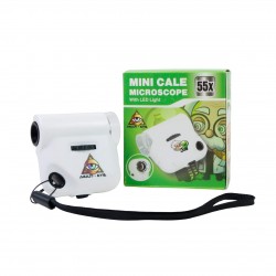 MULTI - EYE Mini Microscope featuring built-in LED lighting for clear, bright viewing. - 55x magnification. - Equipped with a roller and button for easy focus and zoom adjustments. - Batteries included : 3 button batteries. - 10x microscopes per display.